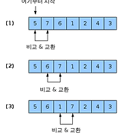 : 정렬 알고리즘 중에 가장 간단한 알고리즘이라고 한다. 최소값을 가장 앞쪽으로 가져오는 작업을 반복하는 형식으로 정렬한다.